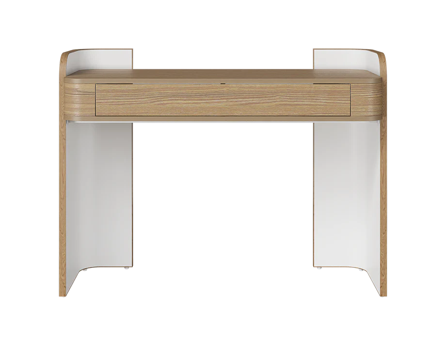 Features a single large handle-less drawer for seamless storage.Crafted from premium MFC with a classic ash and matte white finish.Supported by a sturdy MS pipe base, ensuring lasting durability.Perfect for bedrooms, offering a blend of practicality and contemporary style