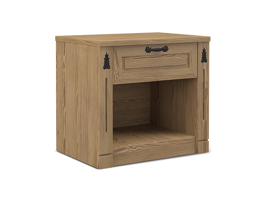 Crafted from ash wood/oak veneer for durability and classic appeal.Finished with a cinnamon polish to highlight the natural wood grain.Matt black powder-coated handles and motifs add a touch of sophistication.